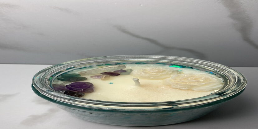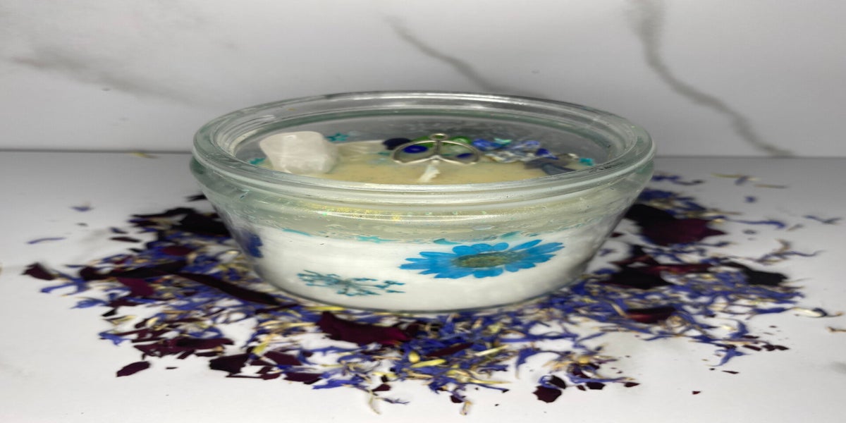 Illuminate your space with our unique glitter candles, each crafted in a handmade vessel adorned with shimmering glitter, delicate flowers, and beautiful crystals. Every candle is one-of-a-kind, with colors enhanced by mica and fragrances exclusively designed by me. Scents may vary, making each piece a special experience. Perfect for meditation, manifestation, or simply as a stunning decor piece. Charge them with your energy and invite new beginnings into your life.
